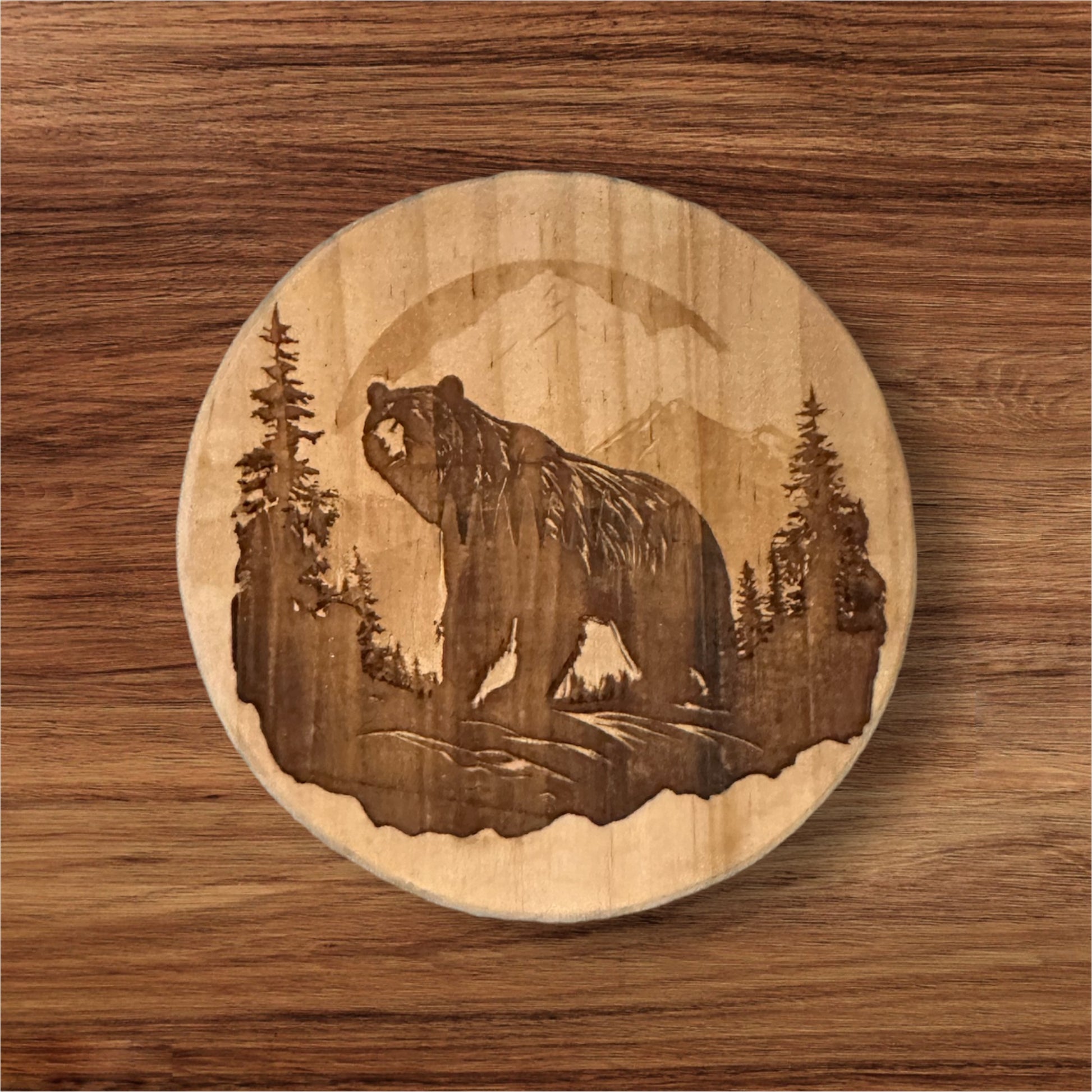 Laser engraved wood coasters sealed with ploy. Various designs available. Some designs are licensed through Glowforge. If you are looking for doing a custom piece or set, just email me with your request.